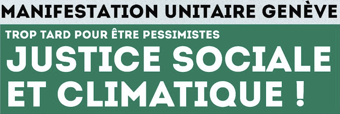 Trop tard pour être pessimistes ! Montrez votre détermination en rejoignant la grande manif unitaire pour une JUSTICE SOCIALE ET CLIMATIQUE ! GPclimat-GE est co-organisateur avec + de 40 organisations + Voir le flyer ICI